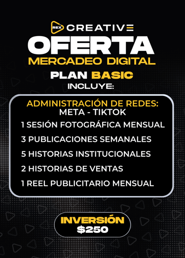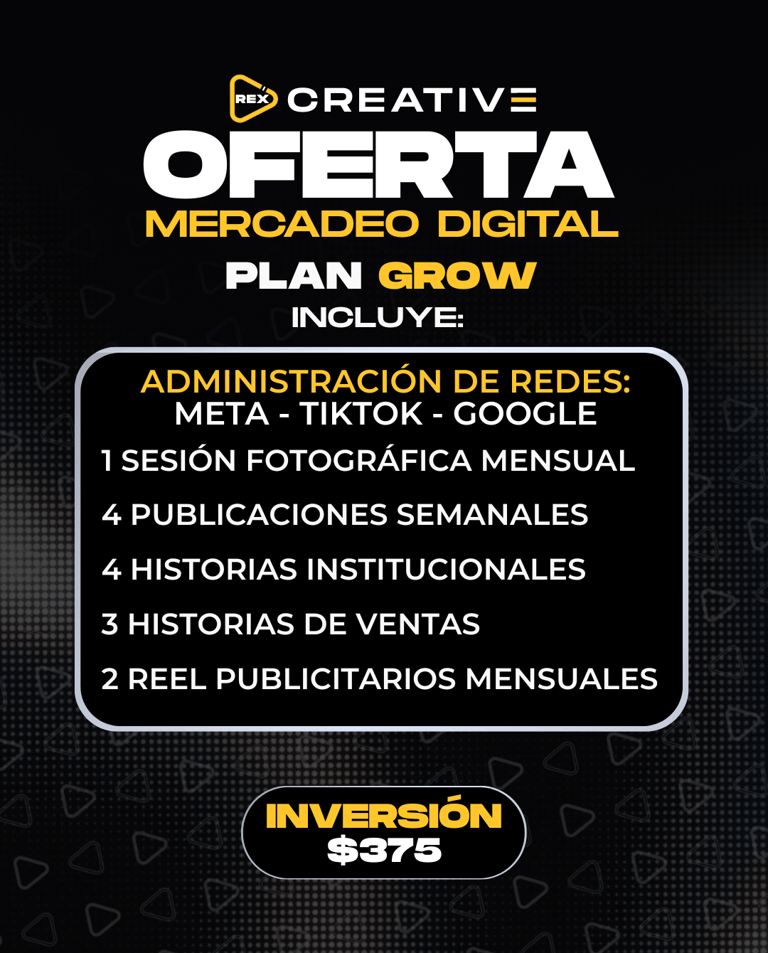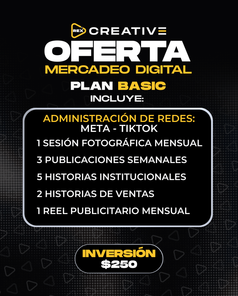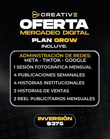 Impulsa la presencia de tu marca con una base sólida. Este plan incluye 1 sesión de fotos de 45 minutos para contenido profesional, la producción de 10 publicaciones semanales, 1 Reel Mensual y el desarrollo de un plan de contenido estratégico. Todo lo que necesitas para empezar a ganar visibilidad y conectar con tu público.